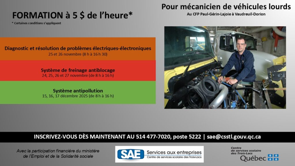 • Formation à 5 $ de l’heure avec Services Québec
